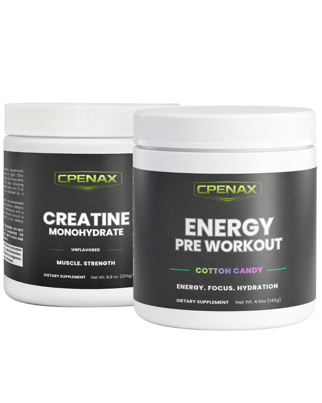 Elevate your training sessions with the Cpenax Nutrition Power Surge Stack, the ultimate combination for explosive energy, focus, and strength.
