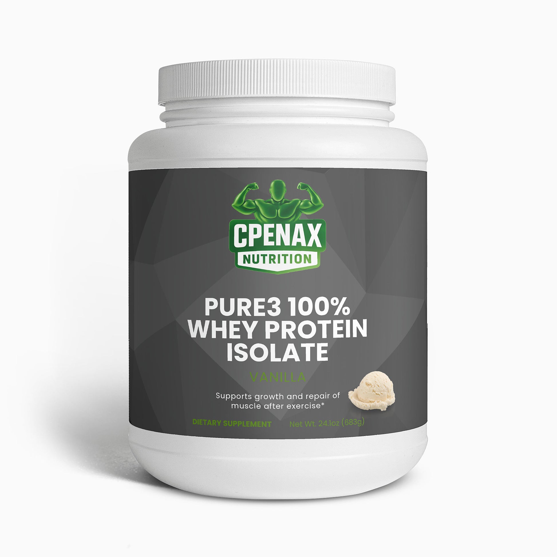 Our Vanilla Whey Protein Isolate is meticulously crafted to support muscle growth and recovery, providing an optimal blend of nutrients for athletes and fitness enthusiasts alike. This premium protein supplement is made with pure whey protein isolate, the purest form of whey available, ensuring maximum protein content with minimal fat and lactose.*